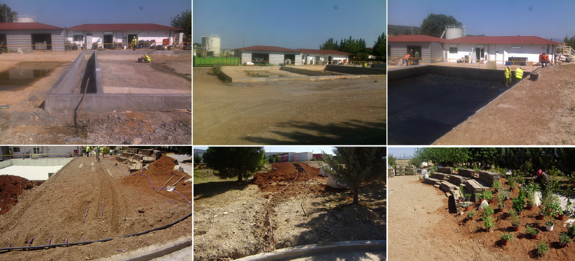 Εκεί δημιουργήσαμε πέρα από τις απαιτούμενες υδραυλικές διατάξεις έναν υγρότοπο (wetland) έκτασης περίπου 200 m2 και μέγιστου βάθους 0,9m. Ο υγρότοπος (wetland) είναι ένα ολοκληρωμένο σύστημα επεξεργασίας νερού με τη χρήση νερού, φυτών, ζώων και μικροοργανισμών. Αποτελείται από δύο λίμνες- λεκάνες. Η πρώτη που είναι χώρος και επεξεργασίας βάθους περίπου 90 εκατοστών με ένα μέτρο όπου την πληρώσαμε με άμμο και βότσαλο