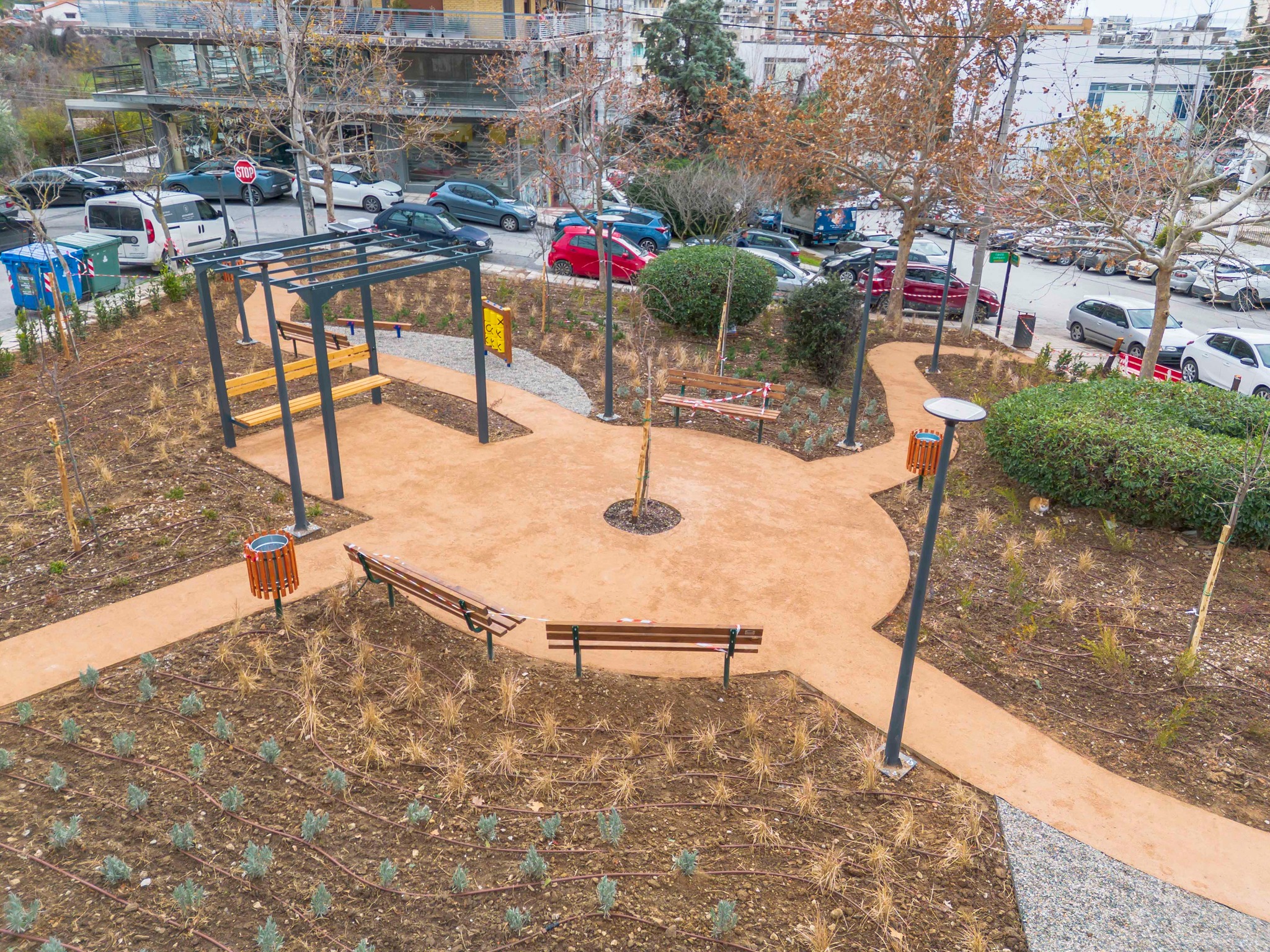 Πάρκα ανάσες για τις γειτονιές βασισμένα στην κυκλική οικονομία, με αυτόνομα φωτοβολταϊκά φώτα καθόλου σκληρά υλικά και γεμάτα πράσινο.