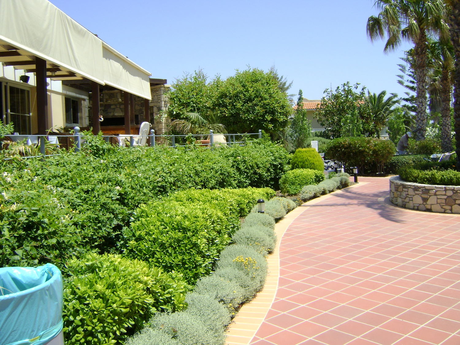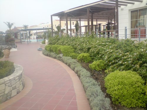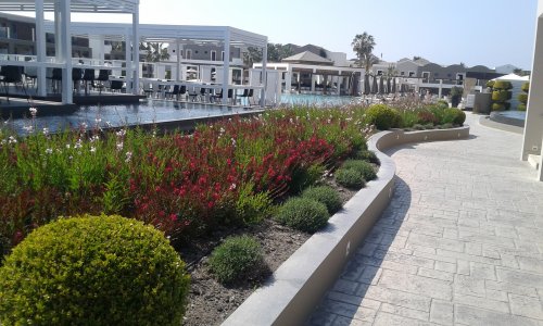 Η κύρια κατασκευή αφορά τη φύτευση δένδρων, θάμνων, ορειβατών, φυτών γαιών και αρωματικών φυτών, όλα προέρχονται από τη μεσογειακή χλωρίδα. Εγκαθίστανται επίσης αρκετοί φοίνικες. Όλα αυτά εκτείνονται σε επιφάνεια 2.500m². Εγκατάσταση προετοιμασμένου χλοοτάπητα γινόταν επίσης σε επιφάνεια 4.000m². Η άρδευση του υλικού φύτευσης δημιουργήθηκε με τη χρήση αυτόματου συστήματος. Για το τρίτο δίχτυ εγκαταστήσαμε το σύστημα άρδευσης γραμμών στάσιμου υποστρώματος για τους σωλήνες χόρτου χλοοτάπητα και για σωλήνες σταφυλιών για φυτά. Χρησιμοποιήσαμε επίσης καταιωνιστήρες για το πότισμα του γρασιδιού.
