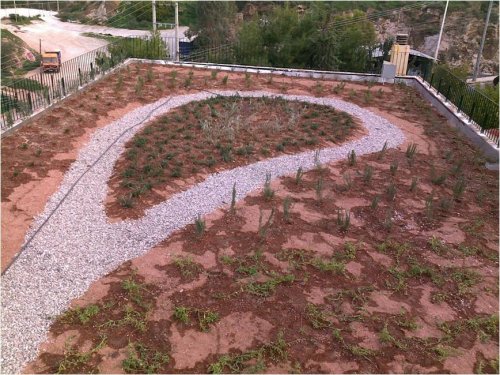 The plants species that we used were all of native Mediterranean flora, low planting which occupy a surface of 900m². The corridors which are between the planting sites are made of gravel.